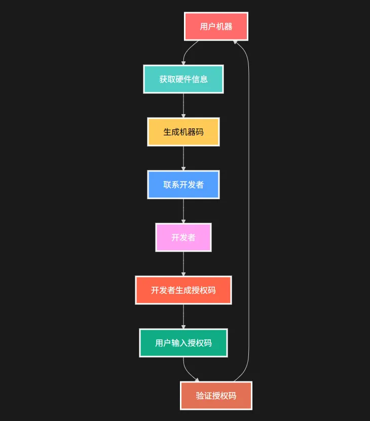 这套授权系统不仅能有效防止软件盗版,还具有良好的用户体验和开发维护性。你可以根据实际需求调整安全级别和功能特性。